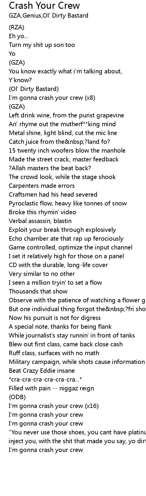 "You never use those shoes, you cant have platinum authority inject me,bitch I inject you, with the shit that made you say, yo dirt doggchew-chew-chew...." |