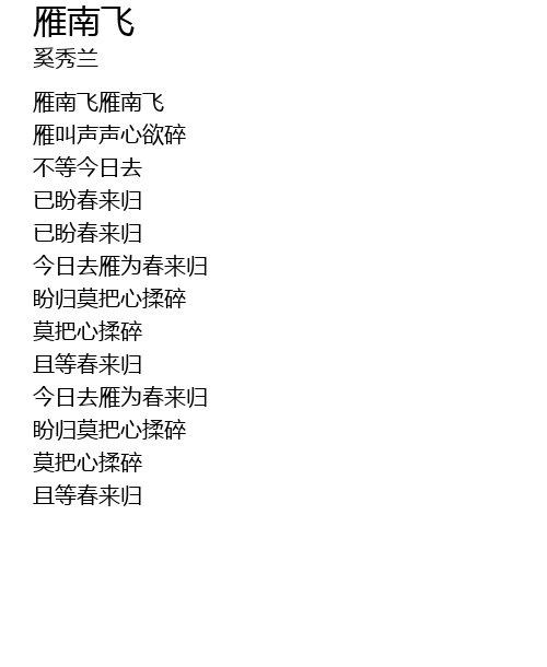 | [00:26.13] | yàn nán fēi yàn nán fēi |
