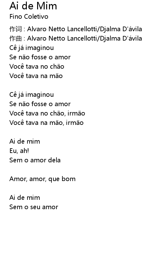 | 作词 : Alvaro Netto Lancellotti/Djalma D'ávila | |