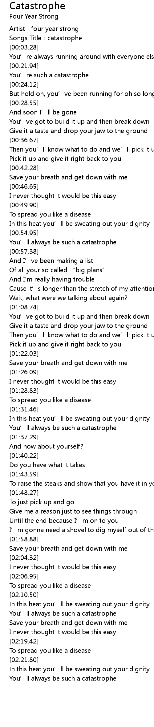 | [00:02.54] | Songs Title: catastrophe |