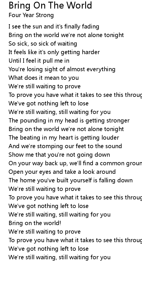 Bring on the world we're not alone tonight |
