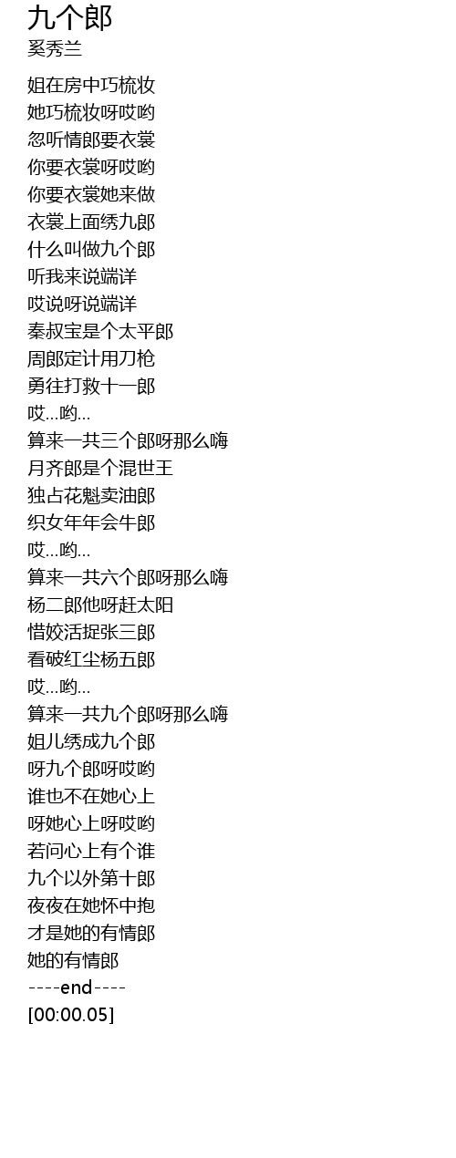 | [01:56.94] | 算来一共九个郎呀那么嗨 |