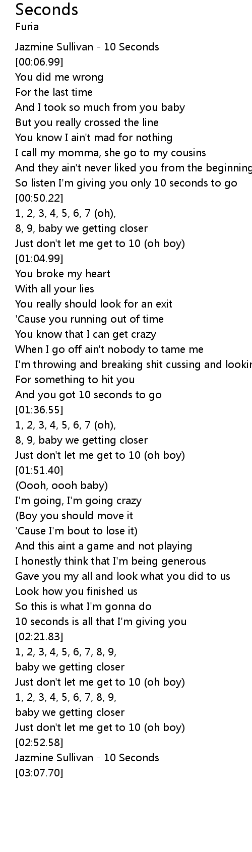 [00:01.10] Jazmine Sullivan - 10 Seconds