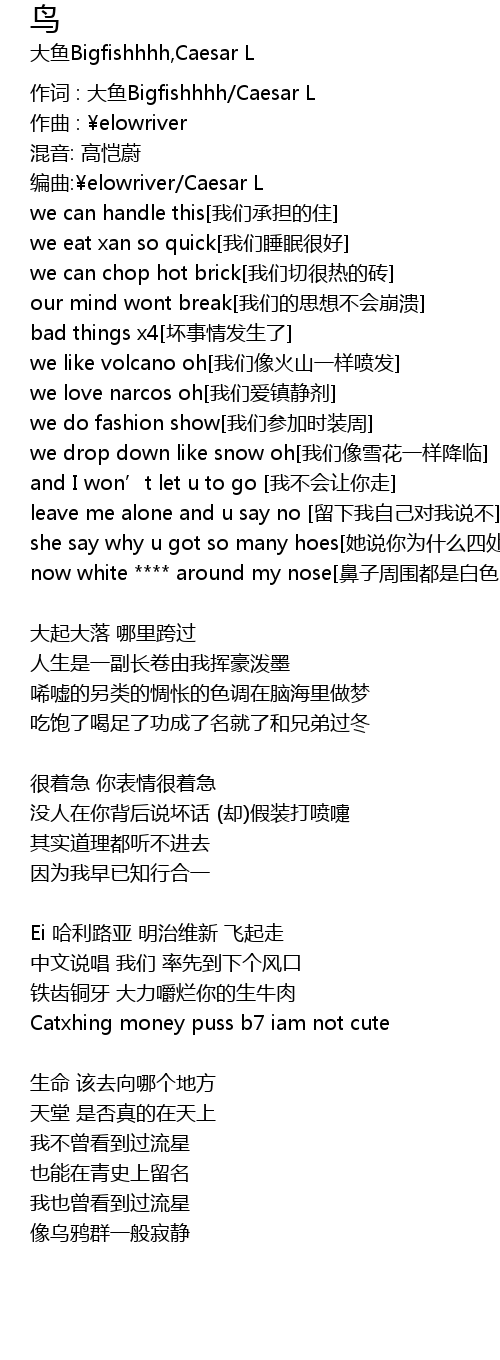 | 作词 : 大鱼Bigfishhhh/Caesar L | |