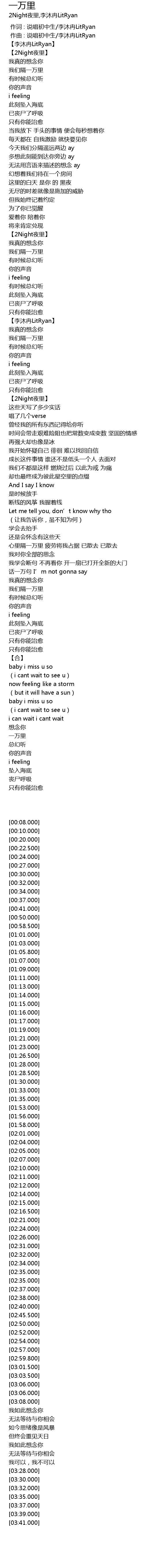 | [03:30.000] | 一万里 |