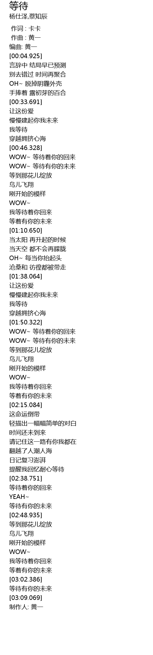 | [02:41.030] | deng dai zhe ni de hui lai |