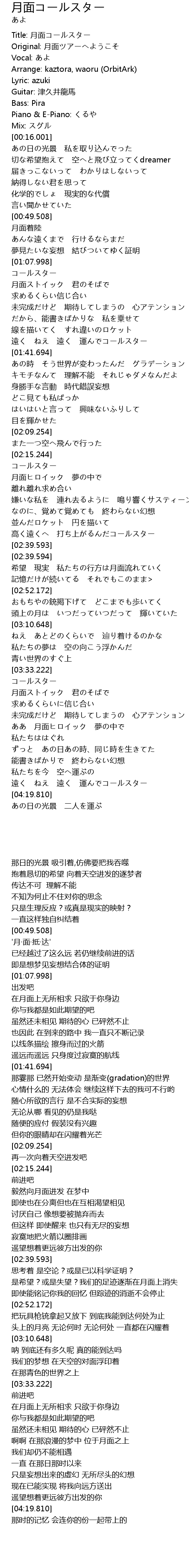 | [00:00.000] | Title: 月面コールスター |