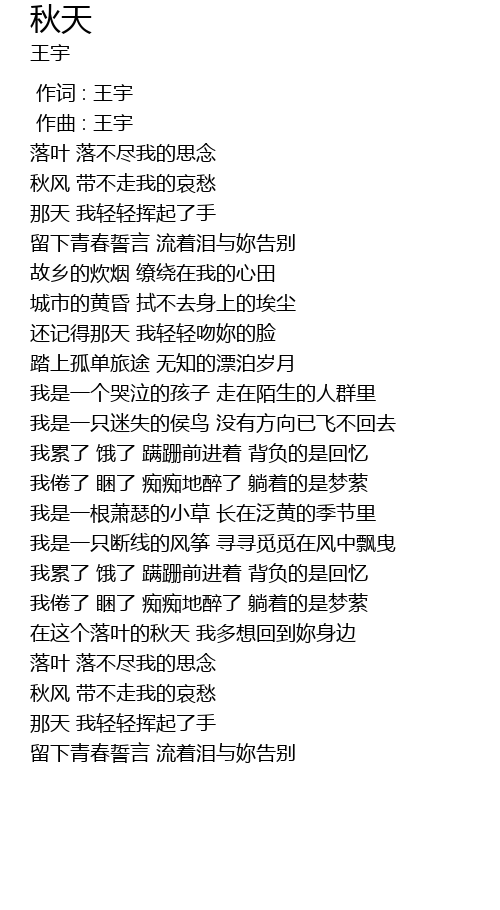 | [00:00.000] | 作词 : 王宇 |