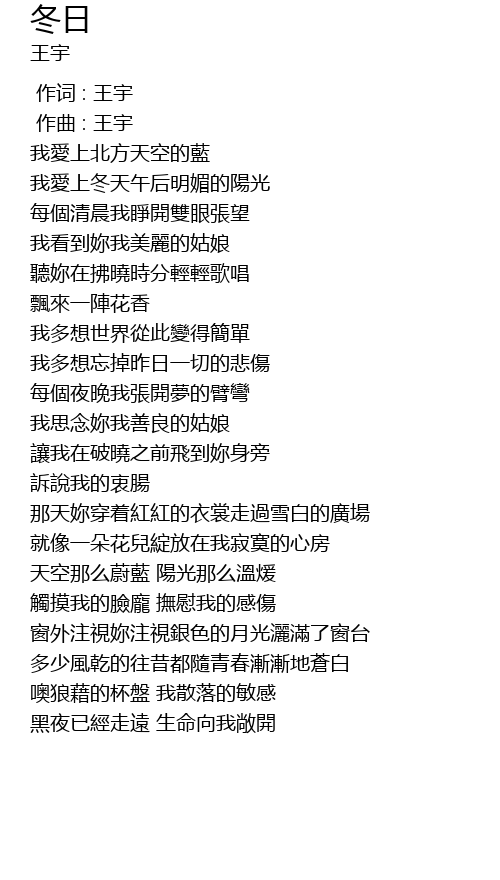 | [00:00.000] | 作词 : 王宇 |