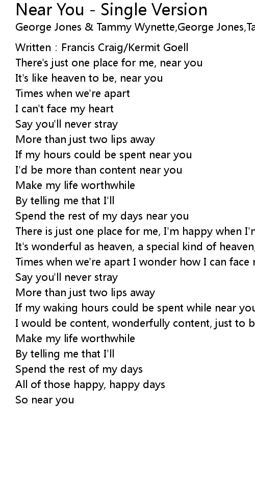 | It' s wonderful as heaven, a special kind of heaven, but only when I' m near you | |