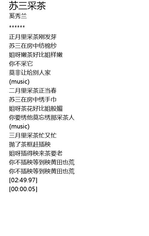 | [01:22.30] | 姐呀茶花好比姐般媚 |