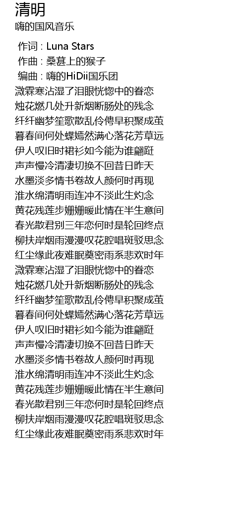 | [04:25.500] | 淮水绵清明雨连冲不淡此生灼念 |