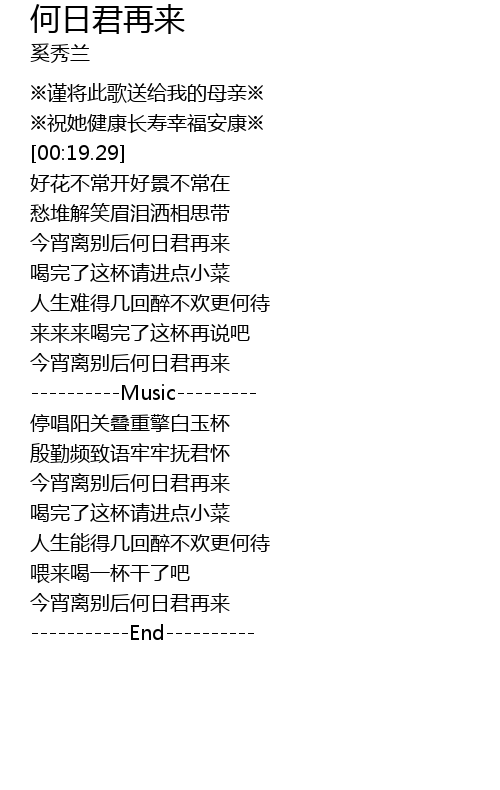 | [00:44.38] | jin xiao li bie hou he ri jun zai lai |