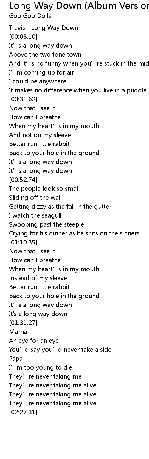 | [00:59.53] | Getting dizzy as the fall in the gutter |