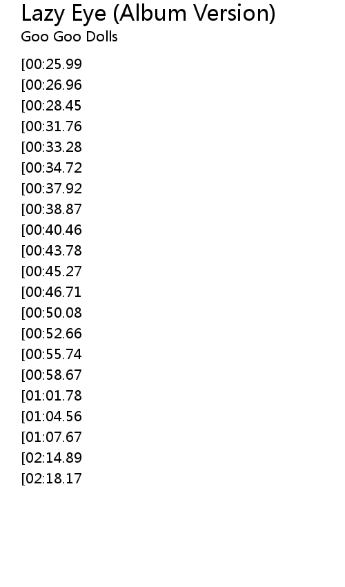 | [02:00.17][00:55.74] | Lazy,Lazy,Lazy |