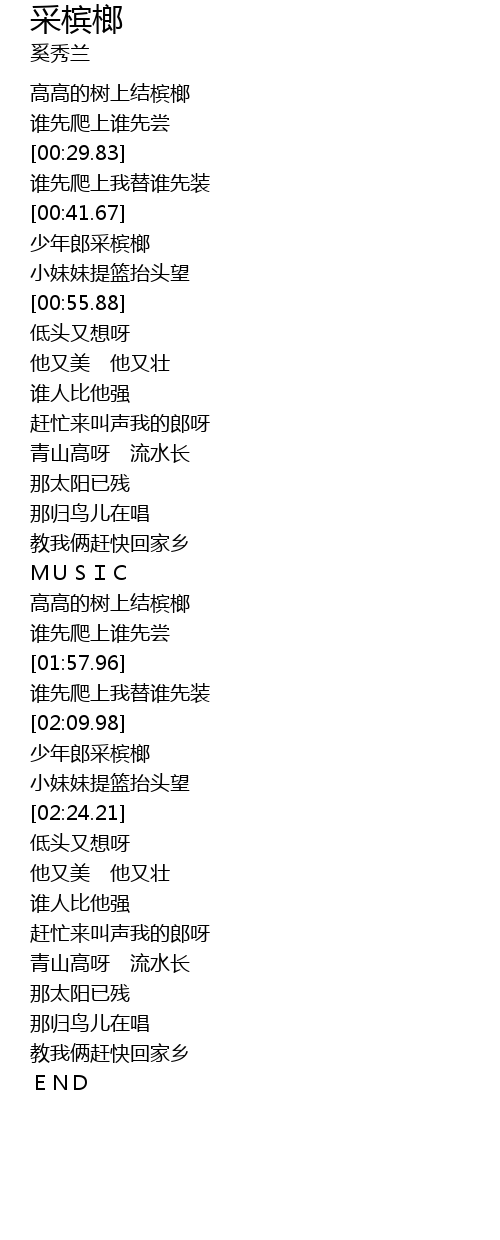 | [02:12.03] | 少年郎采槟榔 |