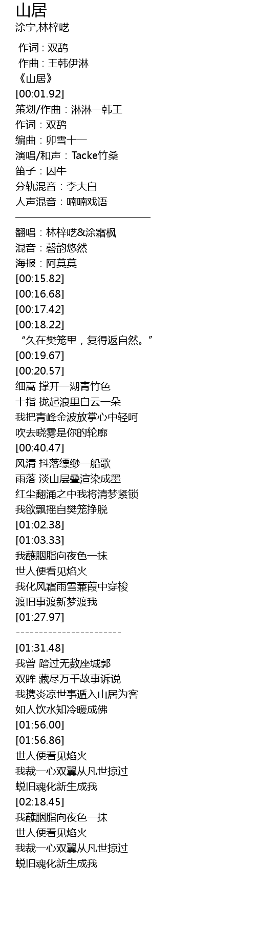 | [00:00.86] | 《山居》 |