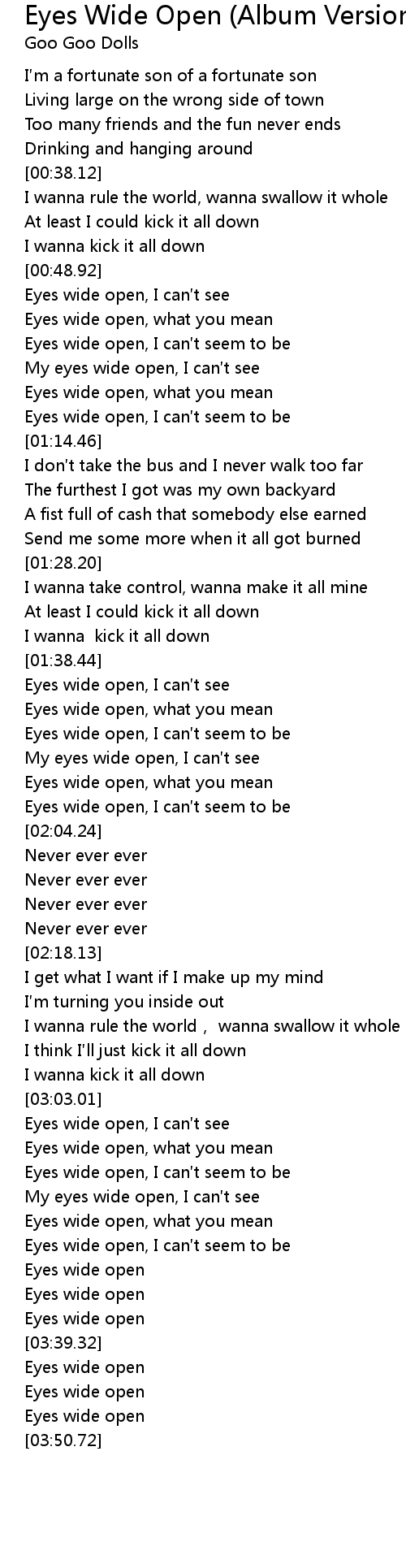 | [03:23.47] | Eyes wide open, I can t seem to be |
