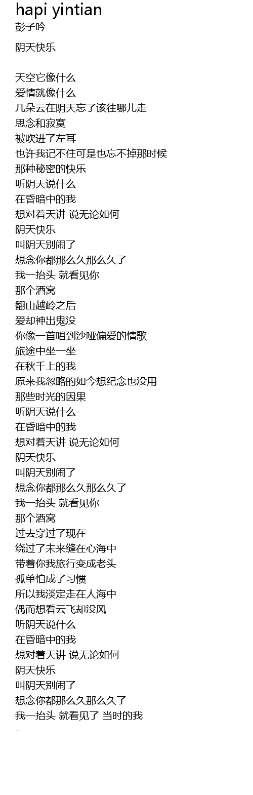 | jǐ duǒ yún zài yīn tiān wàng le gāi wǎng nǎ ér zǒu | |
