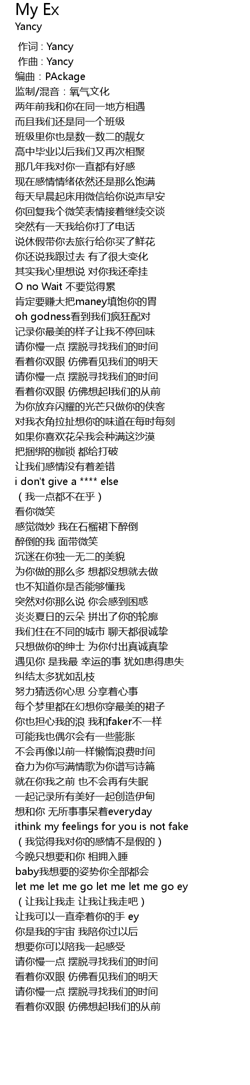 | [00:00.000] | 作词 : Yancy |