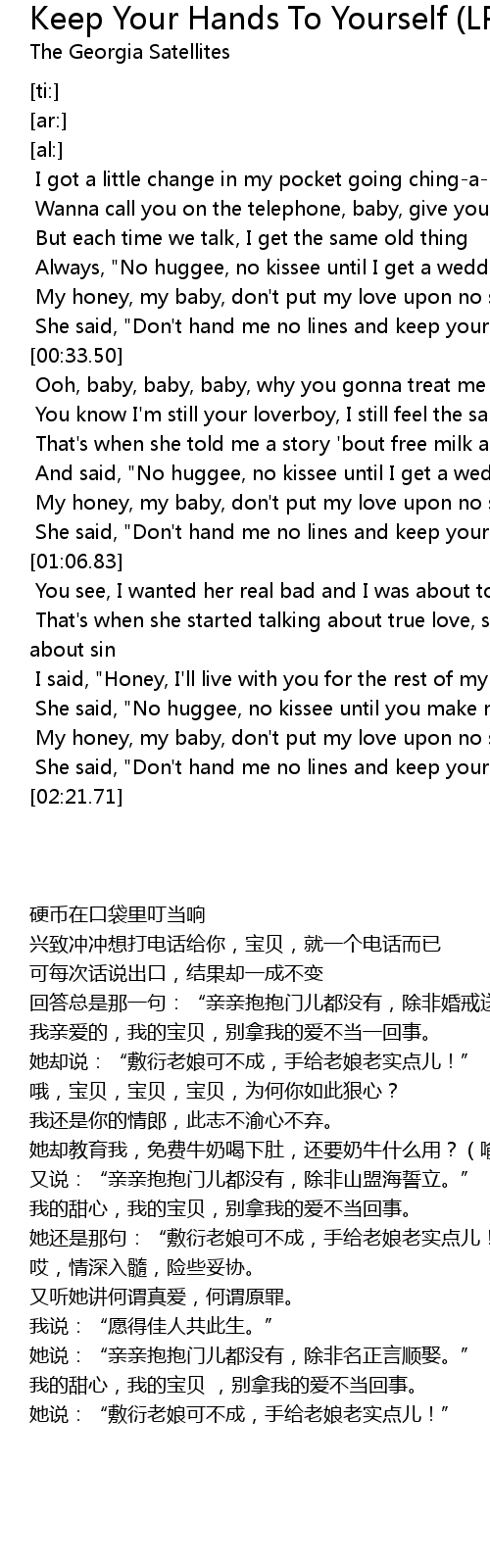 She said, "Don't hand me no lines and keep your hands to yourself" |