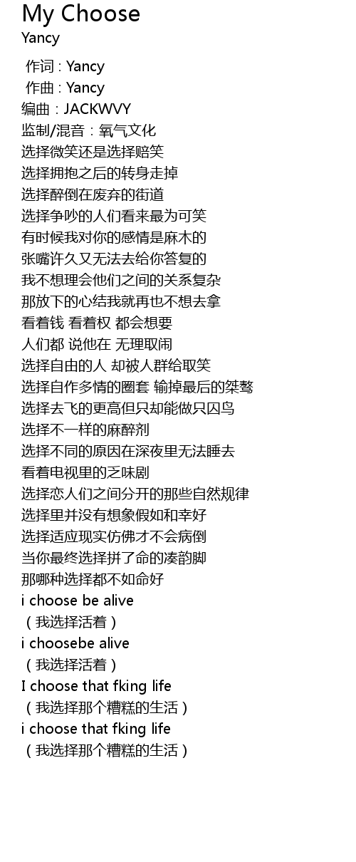 | [01:24.910] | (我选择那个糟糕的生活) |