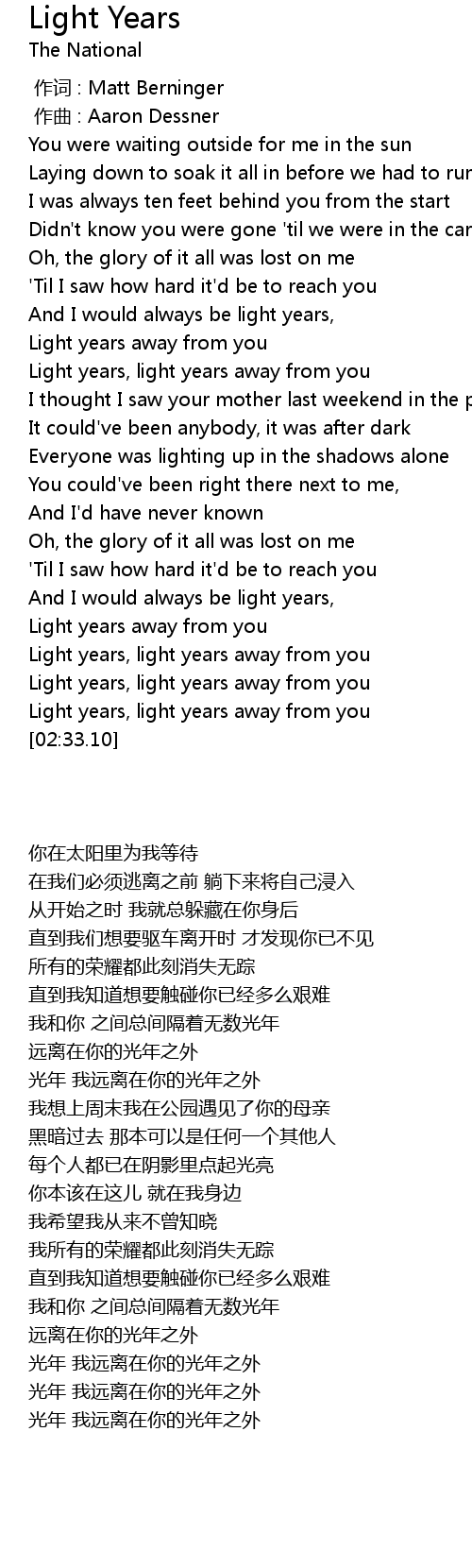 | [02:18.43] | Light years, light years away from you |