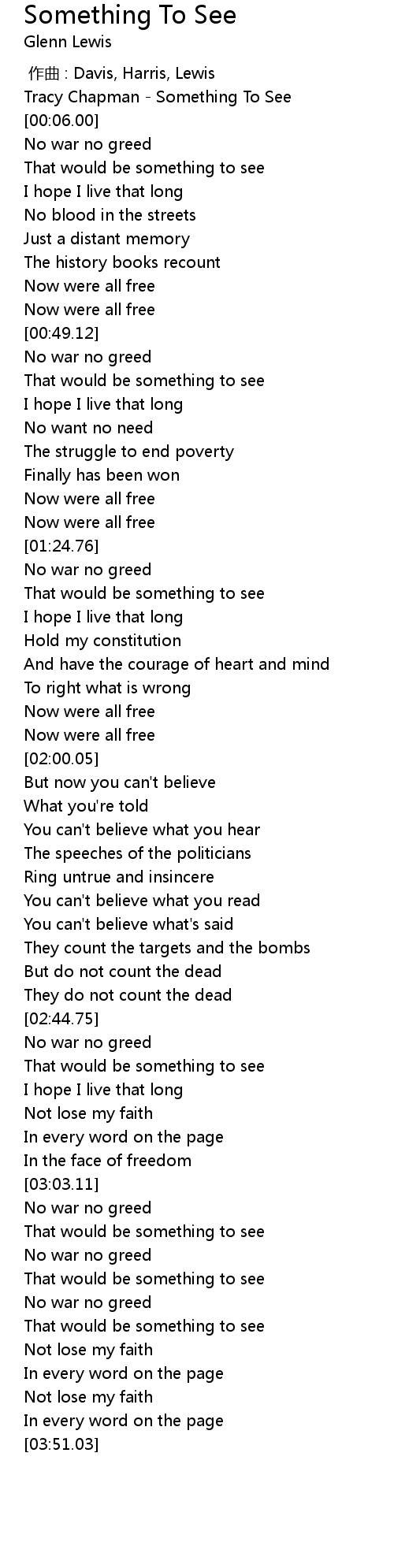 | [00:00.00] | zuo qu : Davis, Harris, Lewis |