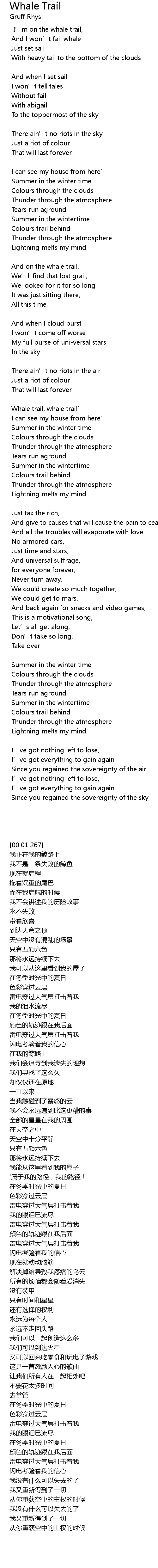 | I’m on the whale trail, | |