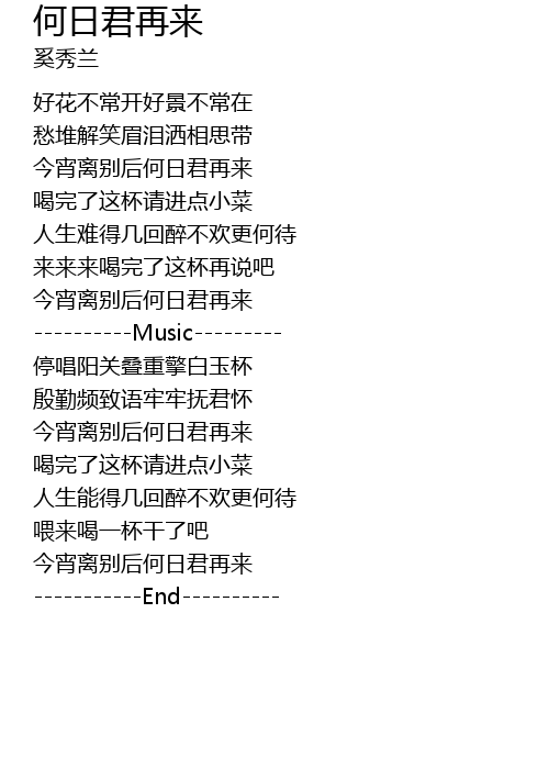 | [00:44.38] | jin xiao li bie hou he ri jun zai lai |