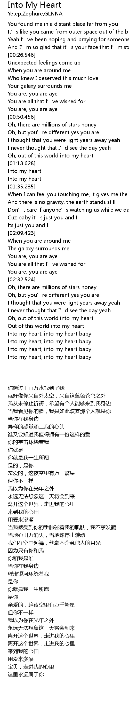 | [02:56.368] | Out of this world into my heart |