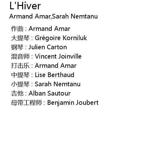 | [00:00.000] | zhōng tí qín : Lise Berthaud |