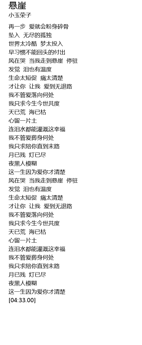 | [03:00.00] | 风在哭 当我走到悬崖 停驻 |