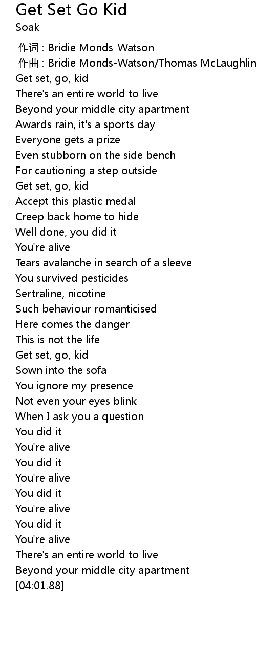 | [00:02.26] | Get set, go, kid |