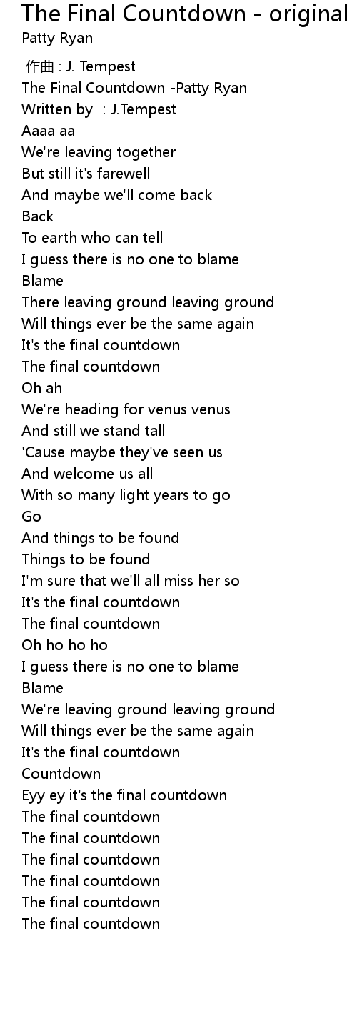 | [00:00.413] | The Final Countdown Patty Ryan |