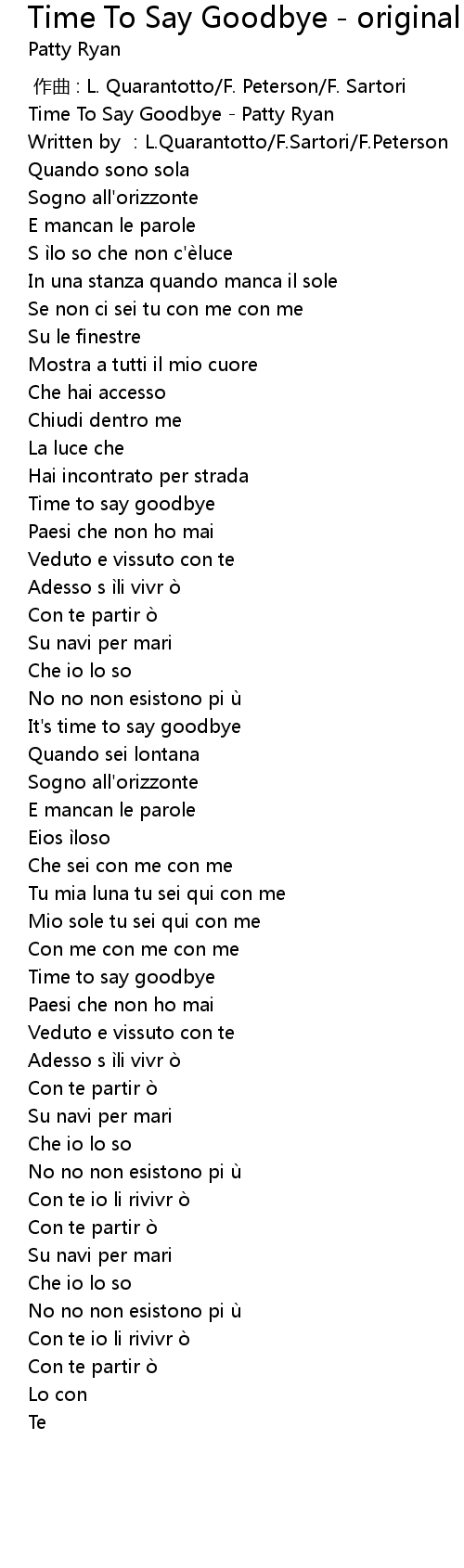 | [00:01.111] | Time To Say Goodbye Patty Ryan |