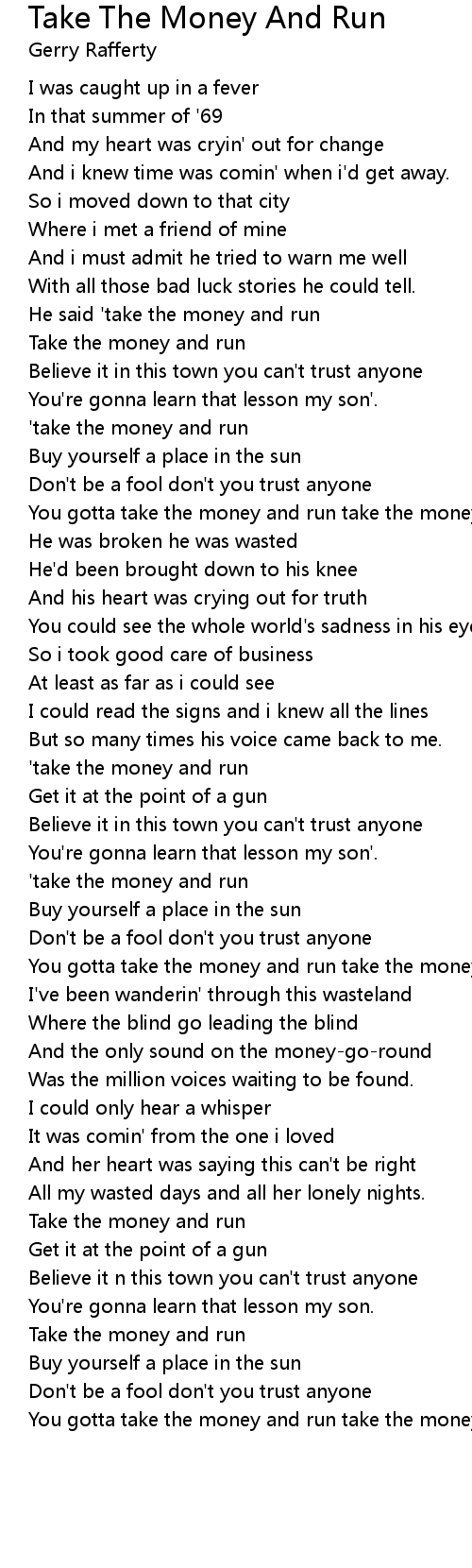 You gotta take the money and run take the money and run'. |