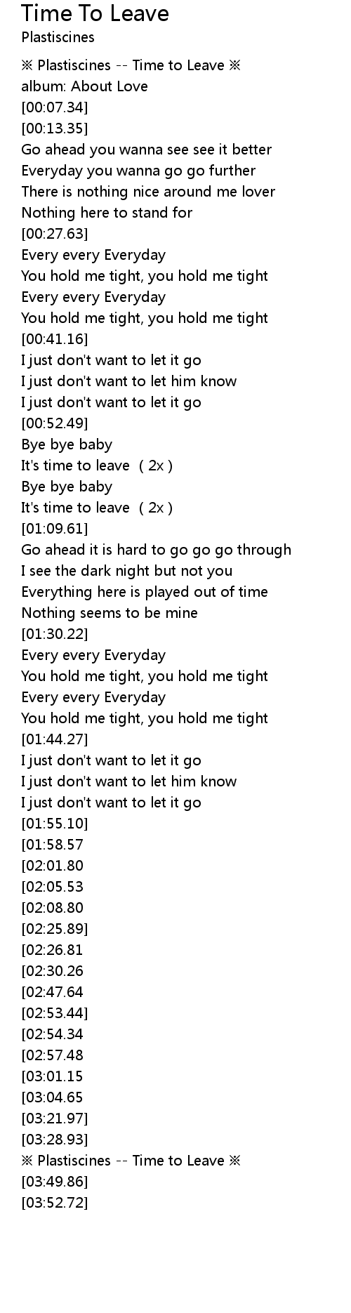 | [00:00.00] | ※ Plastiscines -- Time to Leave ※ |