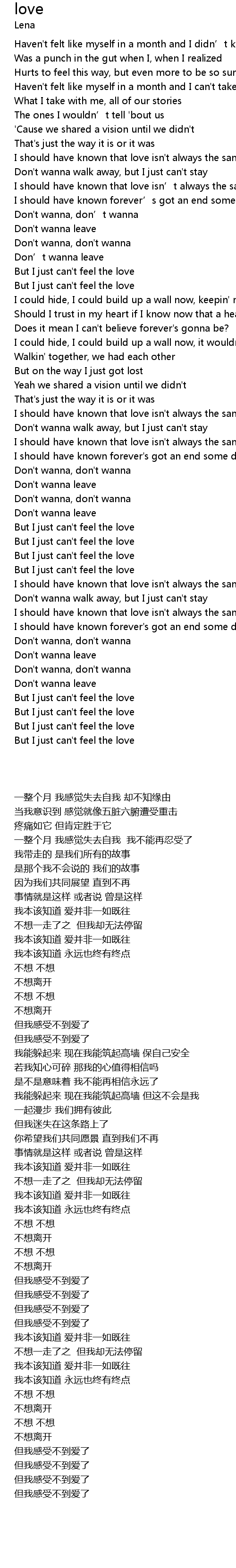 | [00:18.43] | Haven' t felt like myself in a month and I didn' t know why |