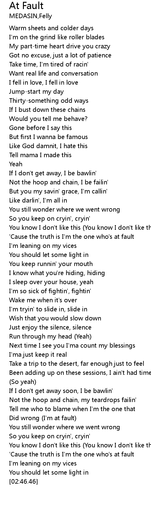 | [02:16.90] | Did wrong (I'm at fault) |