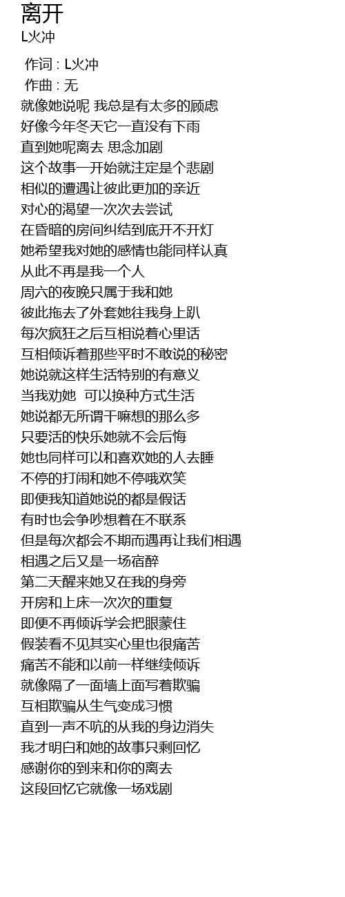 | [00:00.000] | 作词 : L火冲 |