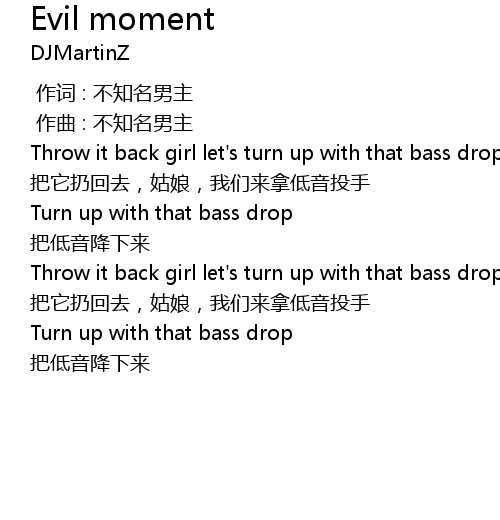 | [00:52.664] | Throw it back girl let' s turn up with that bass drop |