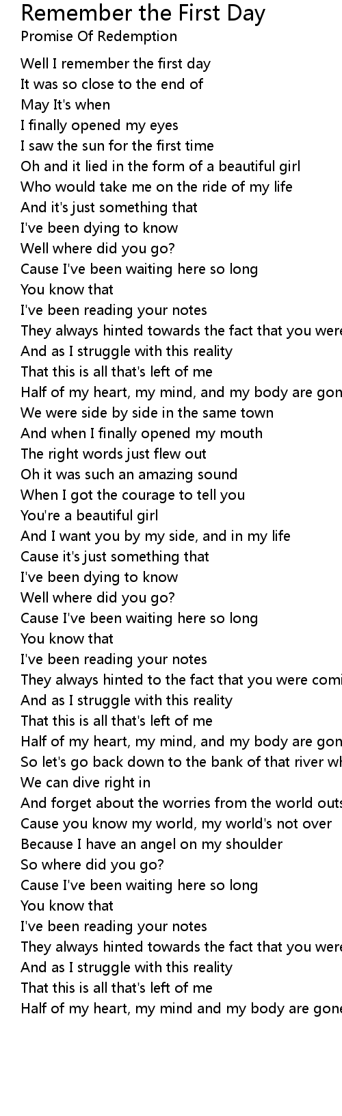 Well I remember the first day |