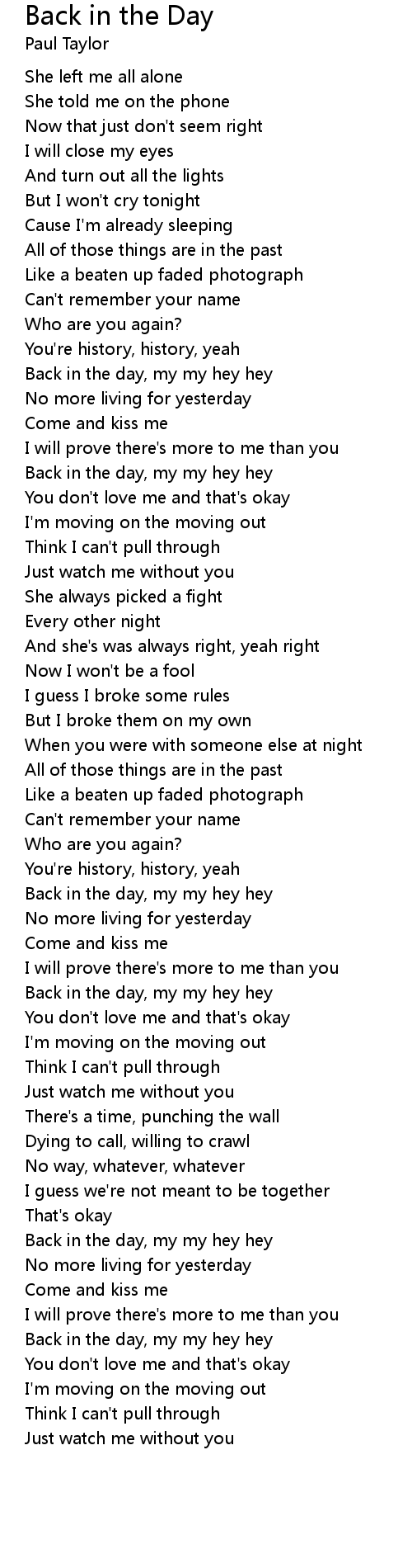 Back in the day, my my hey hey |