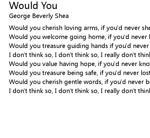 | Would you cherish loving arms, if you'd never shed a tear? | |
