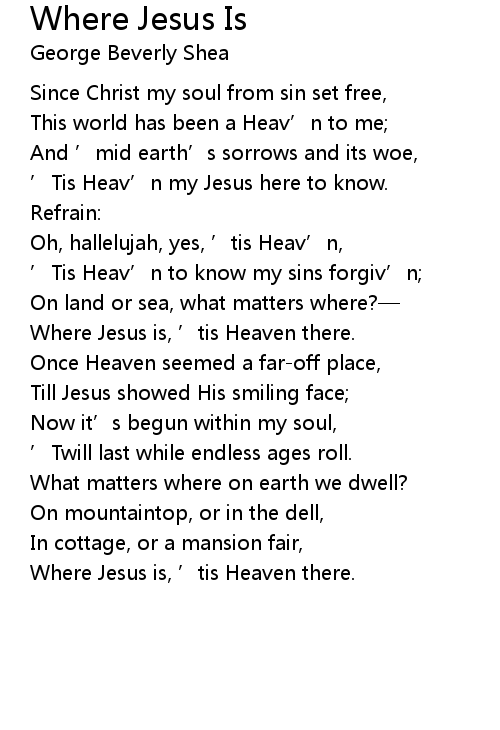 | Where Jesus is, ' tis Heaven there. |