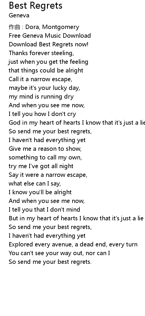 | So send me your best regrets, | |