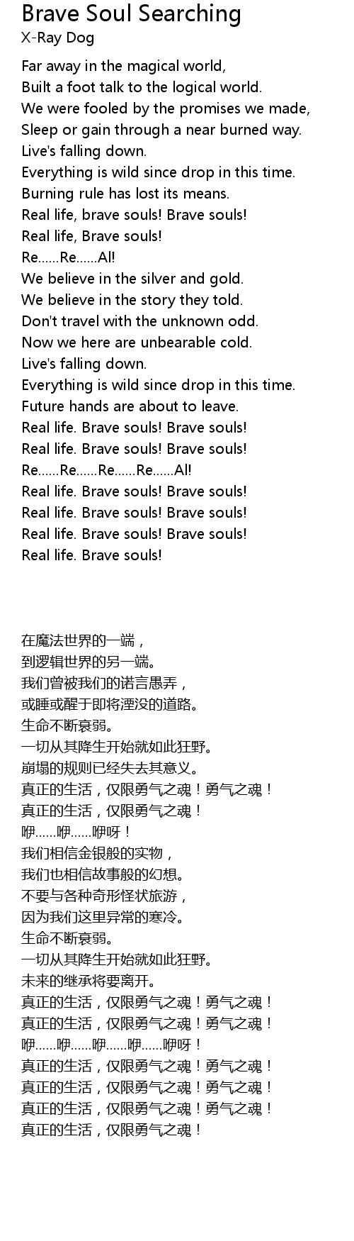 | [02:48.873] | Real life. Brave souls! Brave souls! |