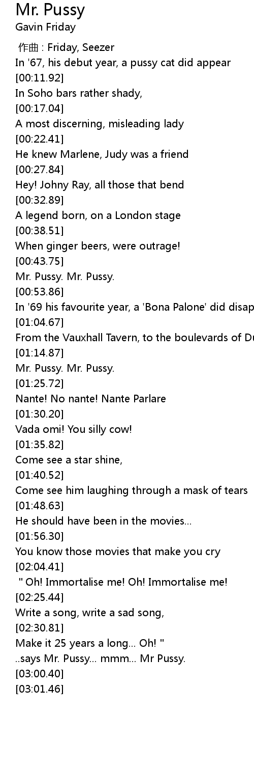 | [02:41.96] | ..says Mr. Pussy... mmm... Mr Pussy. |