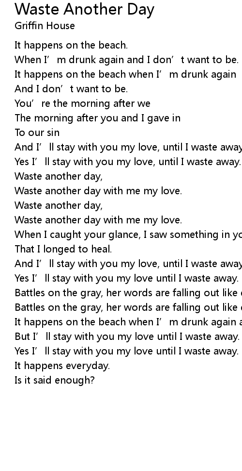 | It happens on the beach when I' m drunk again and I don' t want to be. | |